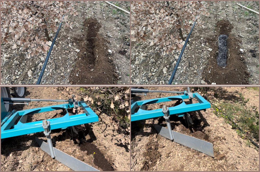 Pour les trufficulteurs équipés, les sillons peuvent également être réalisés à plus grande échelle grâce à un outil attelé au tracteur :
